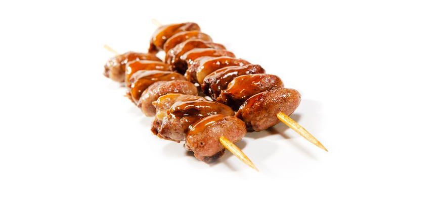 - Разложить на противень, а лучше нанизать на шпажки сами сердечки.