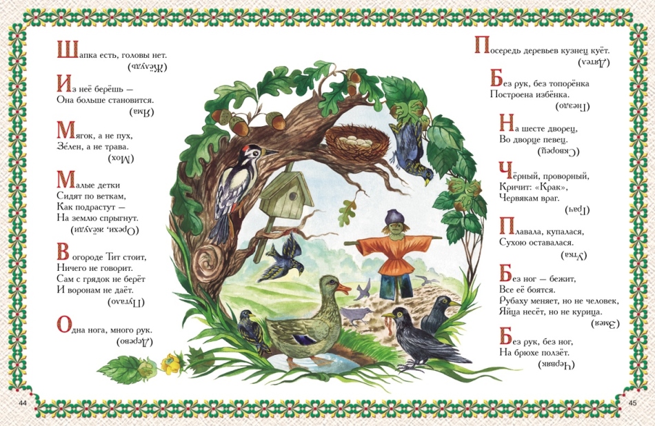- В лес идет —из лесу глядит. Из лесу идет — в лес глядит. (Ответ — котомка.)