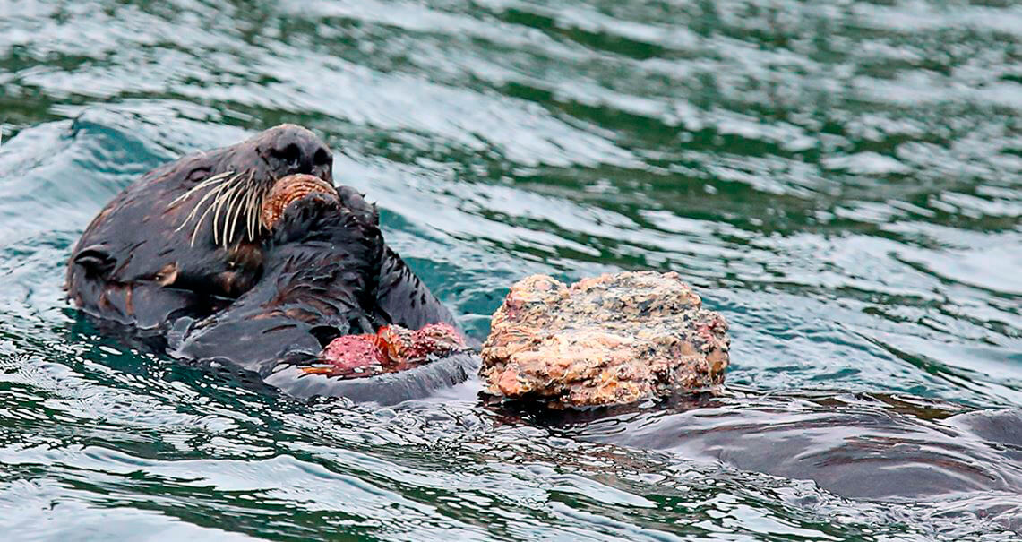 Камень они кладут себе на живот и быстро бьют по нему раковиной, пока она не откроется. Такое орудие труда они носят под левой лапой в специальной кожной складке.