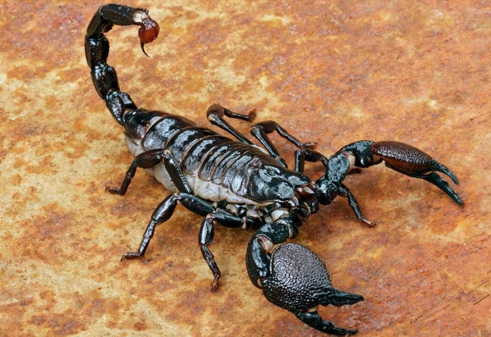 Черный толстохвостый скорпион (Androctonus crassicauda).