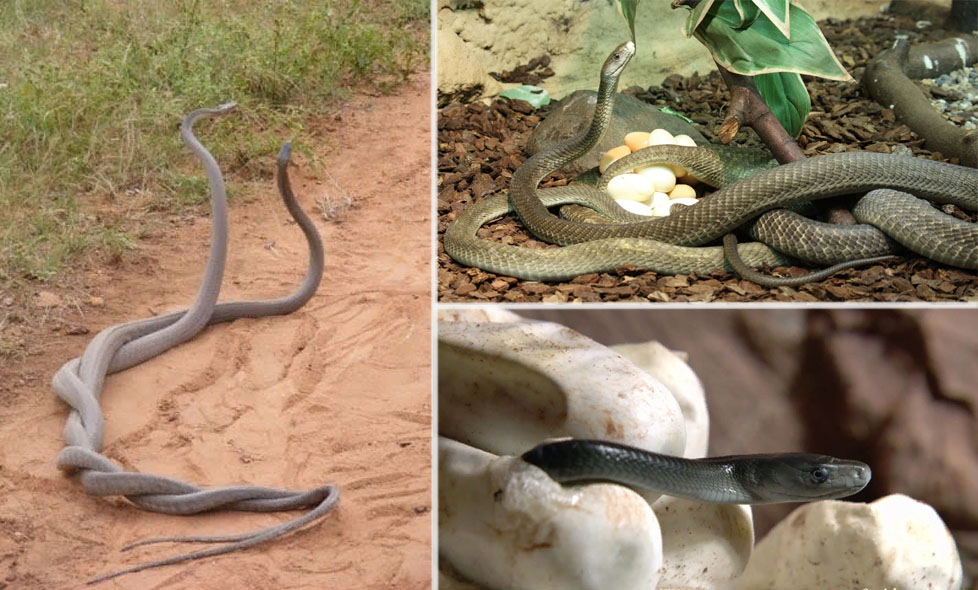 Черные мамбы – одиночки, за исключением брачного сезона, когда они образуют пары. Брачный сезон – это самый конец весны и начало лета. В этот период самцы занимаются поиском партнерш. Обычное дело, когда за одну самку борьба ведется сразу несколькими особями мужского пола. В драке они сплетаются телами, нанося друг другу удары головами. При этом каждый пытается поднять голову выше конкурента, чтобы таким образом выказать свое превосходство над соперником. Борьба за продолжательницу рода длится, пока менее сильный соперник не уползет прочь, признав свое поражение. Примечательно, что в ходе драки эти змеи не кусают друг друга, то есть, не прибегают к яду. Победивший самец никогда не преследует поверженного соперника, а сразу начинает заниматься самкой. После спаривания партнеры навсегда расползаются в разные стороны по своим делам. Самец – охотиться, самка – устраивать гнездышко для кладки. Через положенный срок она отложит 6-17 яиц. Период созревания зародышей – 2,5-3 месяца.